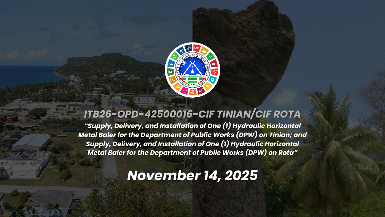 Supply, Delivery, and Installation of One (1) Hydraulic Horizontal Metal Baler for the Department of Public Works (DPW) on Tinian; and Supply, Delivery, and Installation of One (1) Hydraulic Horizontal Metal Baler for the Department of Public Works (DPW) on Rota...